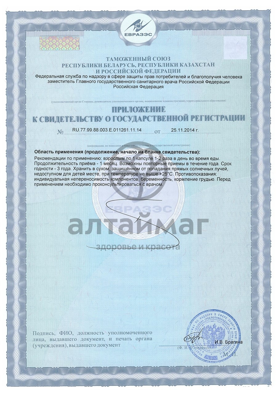 Взрослым по 1 капсуле 1-2 раза в день во время еды. Продолжительность приема: 1 месяц. Возможны повторные приемы в течение года.Противопоказания